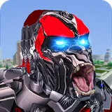 Futuristic Robot Transforming Gorilla Attack City