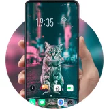 Cat road night theme shining building flower
