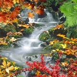Forest, waterfall, lake